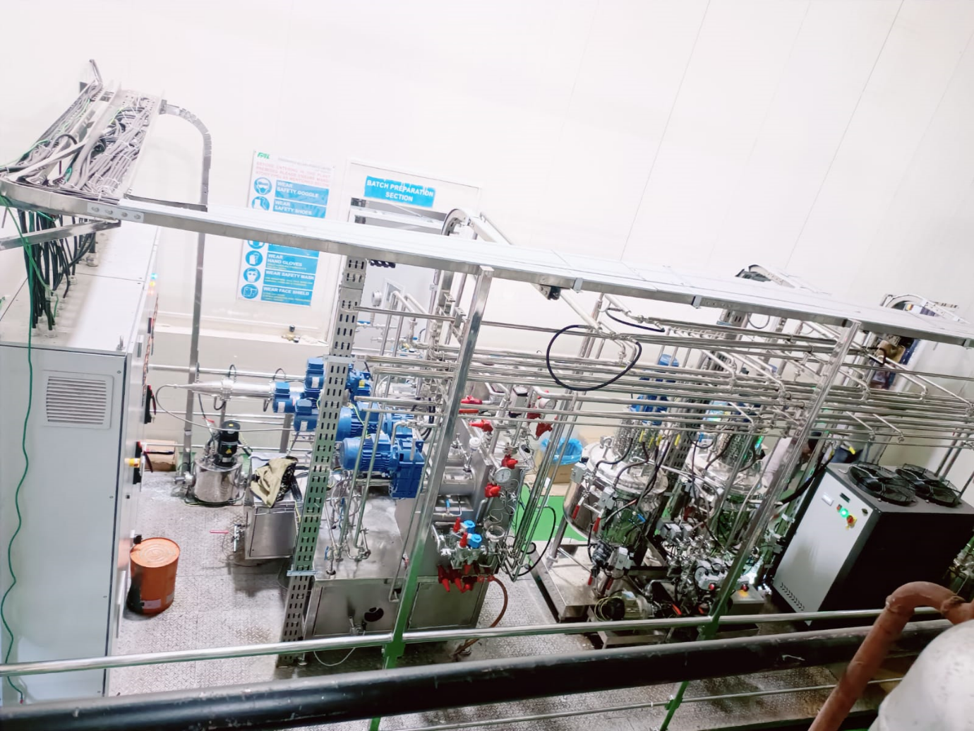 The Lab Scale model is a SCADA operated Pilot Plant will compress of two Sinitators and two Crystallizers. A wide range of capacity from 50 kgs/hr to 150 kgs/hr is made possible with the help of variable frequency drives on which the Sinitators operate on and the automatic speed control of the Ammonia Compressor that can automatically be set from 10%-100% capacity depending on the rate of production. The Lab Scale model is a skid mounted equipment complete with two batching tanks mounted on Load cells to create batches, high pressure piston pump, MFC controlled nitrogen dozing unit, homogenizing valve and resting tube enabling the customer to make all Specialty Fats possible. The Lab Scale Plant shall be completely automatic, SCADA operated with data logging of important parameters for scaling up to a commercial scale.