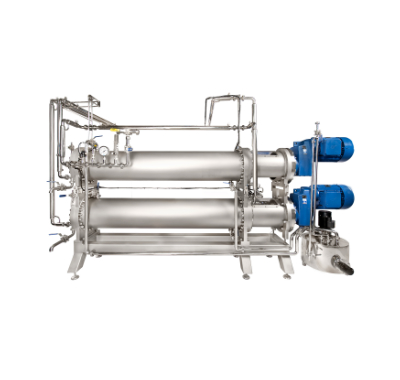 The Crystallization process for Shortenings and Margarines begins with the Pasteurization of the emulsion after which it is pumped into the Scraped Surface Heat Exchanger (SSHEs) with the help of a positive displacement pump. The emulsion is shock chilled in high pressure heat exchangers (SSHEs) with the help of continuous chilling and scarping action. Once chilled, the product is crystallized in three different stages. The first phase of crystallization is done with the help of the Crystallizer (Pin Rotors) in which the product is worked with the help of pins on both the rotating shaft and the body or Resting Tube with Sieve Plates. The final stage of crystallization takes place in the cold room or the warehouse for certain other over a maximum period of 48-72 hours.